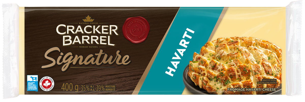Fromage à pâte demi-ferme au goût de beurre avec une texture lisse et crémeuse qui plaira à tous les palais. Préparez des poitrines de poulet farcies au havarti. Un vrai délice!