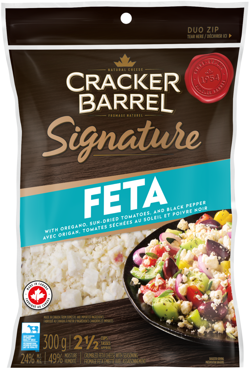 Ce fromage Feta acidulé est émietté avec de l’origan, des tomates séchées au soleil et du poivre noir pour donner une touche méditerranéenne à tout type de salade.