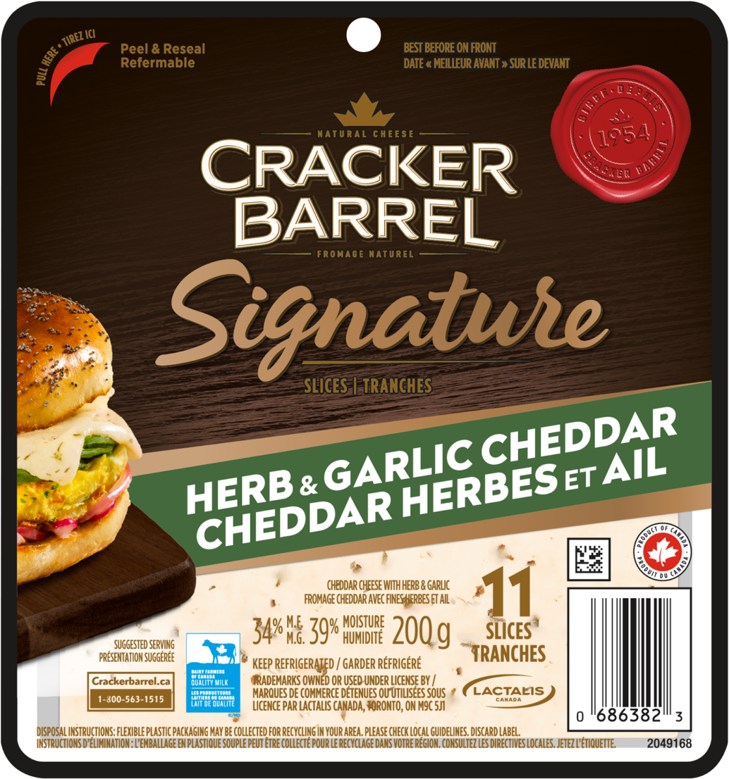 Le goût classique du Cheddar que vous aimez est maintenant relevé d’un mélange de fines herbes et d’ail qui feront de vos poitrines de poulet farcies un sujet de conversation. L’emballage Soulever – sceller aide à conserver plus longtemps la fraîcheur et la saveur de nos tranches.