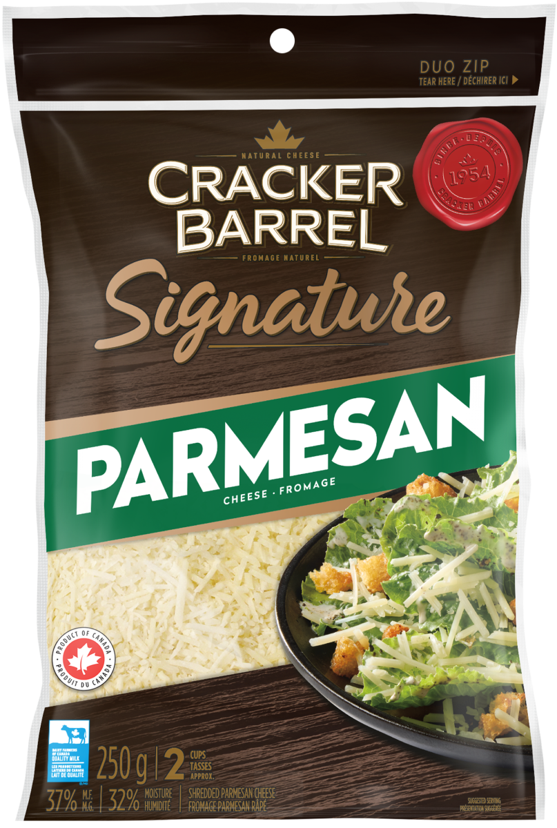 Notre fromage râpé 100 % Parmesan est parfait pour garnir les pâtes ou salades.